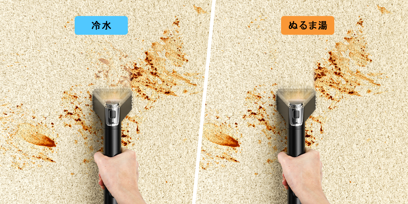カーペットクリーナーには、水と洗剤を使うタイプが多くあり、水温や洗剤の種類によっても効果が変わります。