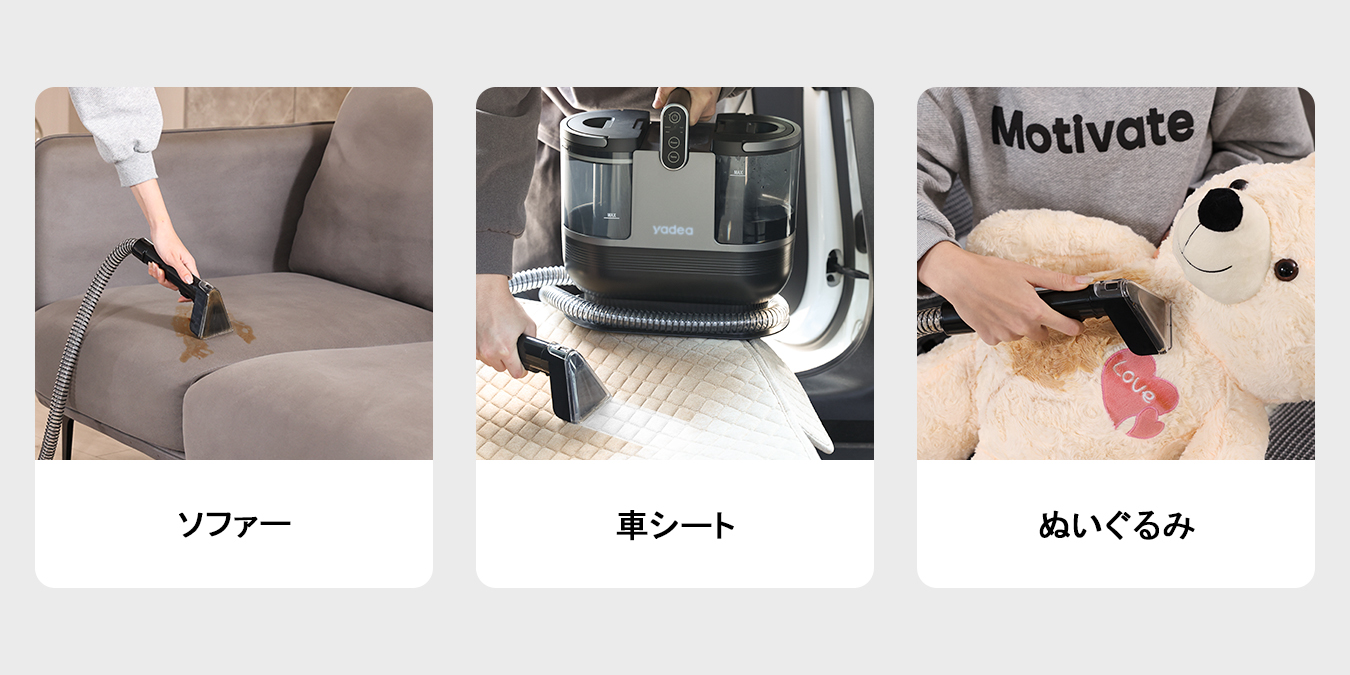 カーペットクリーナーはソファやカーペットだけでなく、ベッドマットレスや車のシート、カーテンなどにも利用できます。適切なアタッチメントや吸引口を使い分けることで、多様な布製品の清掃が可能です。